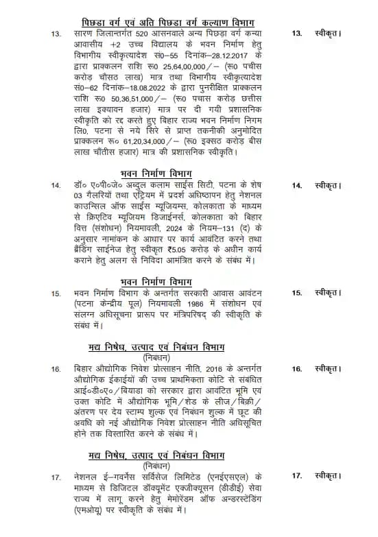बिहार कैबिनेट की इस बैठक में लिए गए फैसले महिलाओं के आर्थिक सशक्तिकरण, स्वास्थ्य सेवाओं के विस्तार, शिक्षा सुधार और बुनियादी ढांचे के विकास की दिशा में मील का पत्थर साबित हो सकते हैं। सरकार का दावा है कि इन योजनाओं का सीधा फायदा बिहार की जनता को मिलेगा।