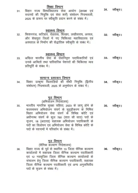 बिहार उत्कृष्ट खिलाड़ियों की सीधी नियुक्ति नियमावली 2025 को मंजूरी दी गई।