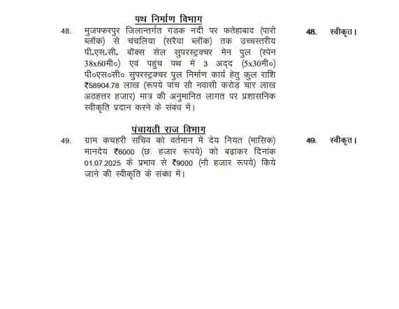 पंचायती राज विभाग ने ग्राम कचहरी सचिव का मानदेय 6,000 रुपये से बढ़ाकर 9,000 रुपये किया।