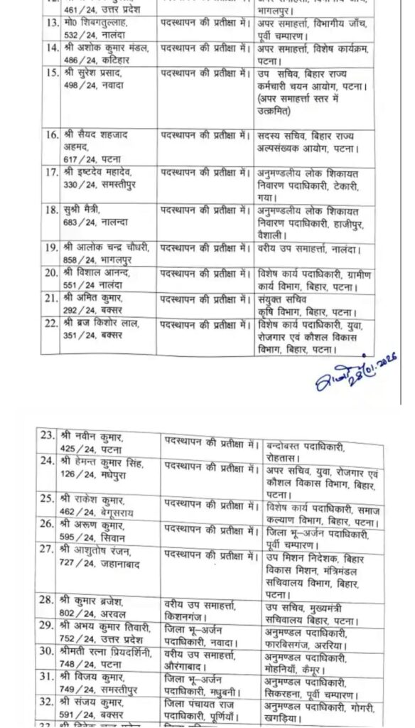 इस तबादला सूची में अपर सचिव, संयुक्त सचिव, उप सचिव और विभिन्न जिलों के अनुमंडल पदाधिकारी स्तर के अधिकारी शामिल हैं। सरकार का मानना है कि इस बदलाव से सचिवालय से लेकर जमीनी स्तर तक कामकाज में तेजी आएगी।